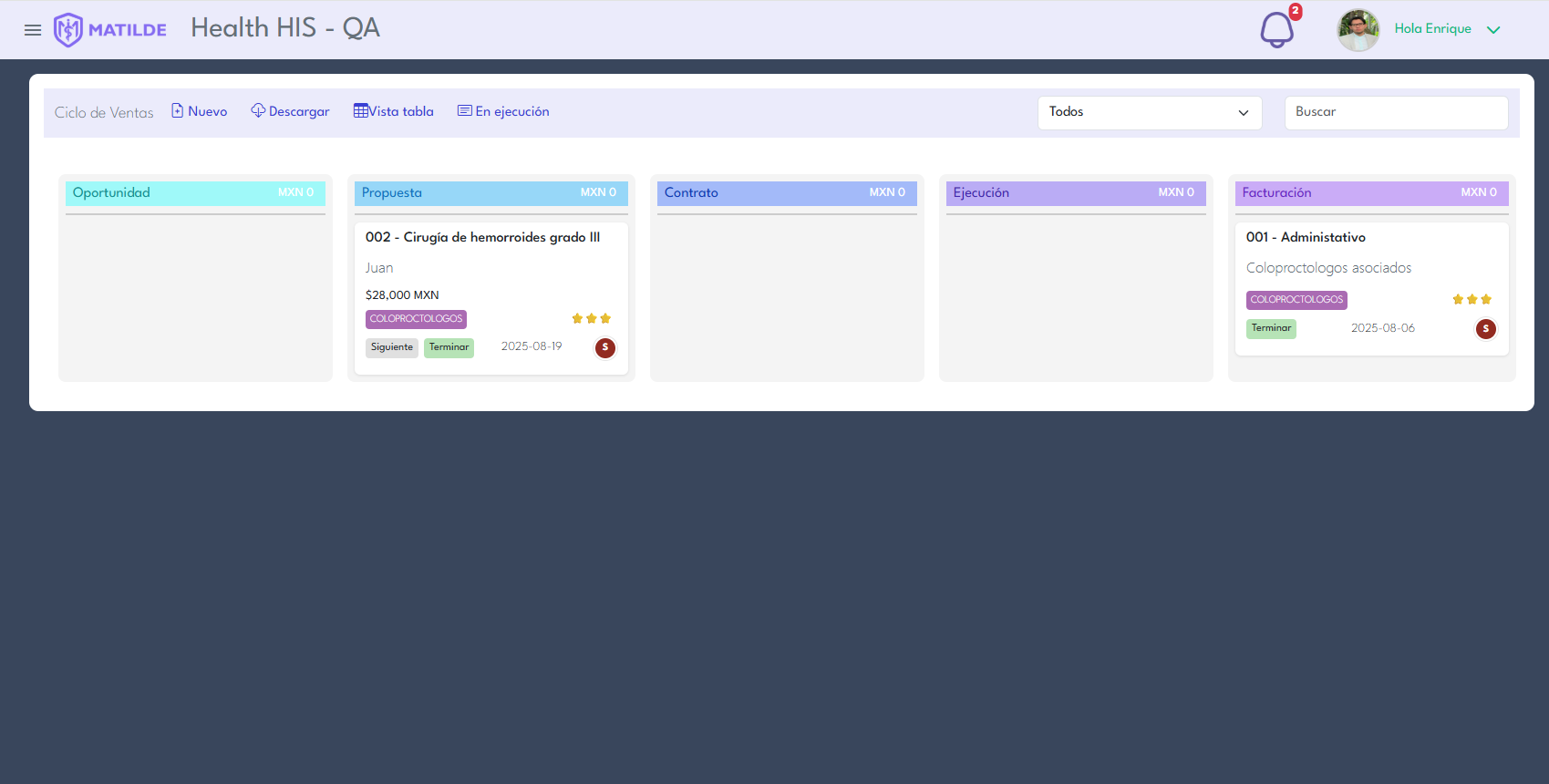 Módulo enfocado en la gestión operativa del hospital.