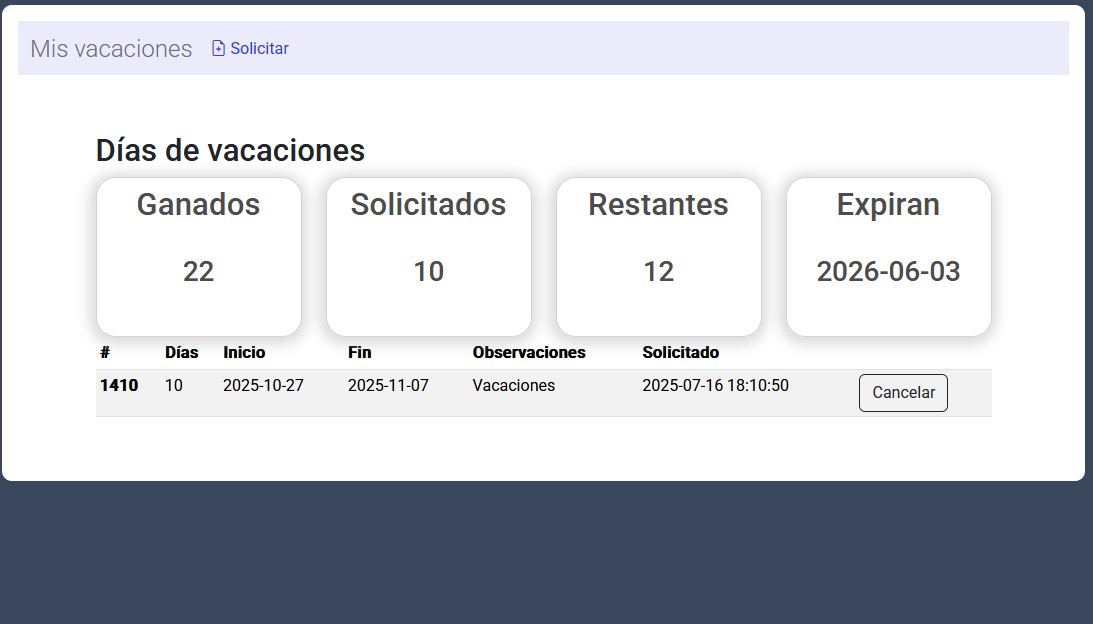 Solicitud y seguimiento de vacaciones