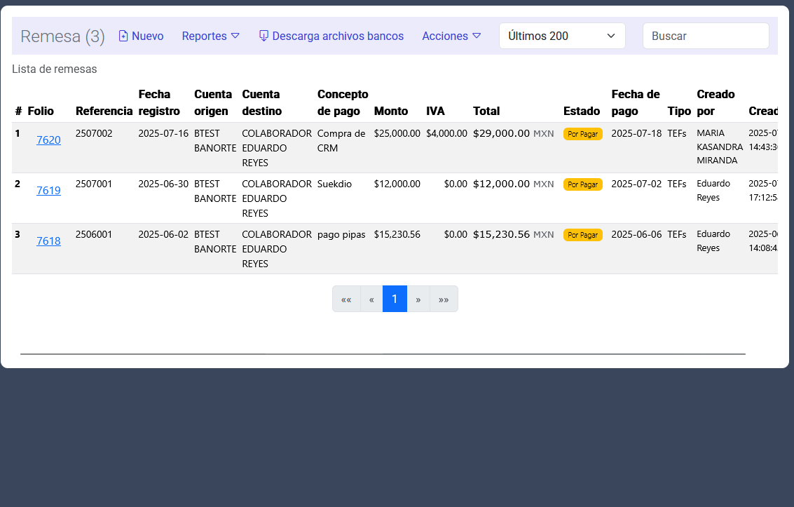 Generación de archivo TXT para pagos en banco (BANORTE)
