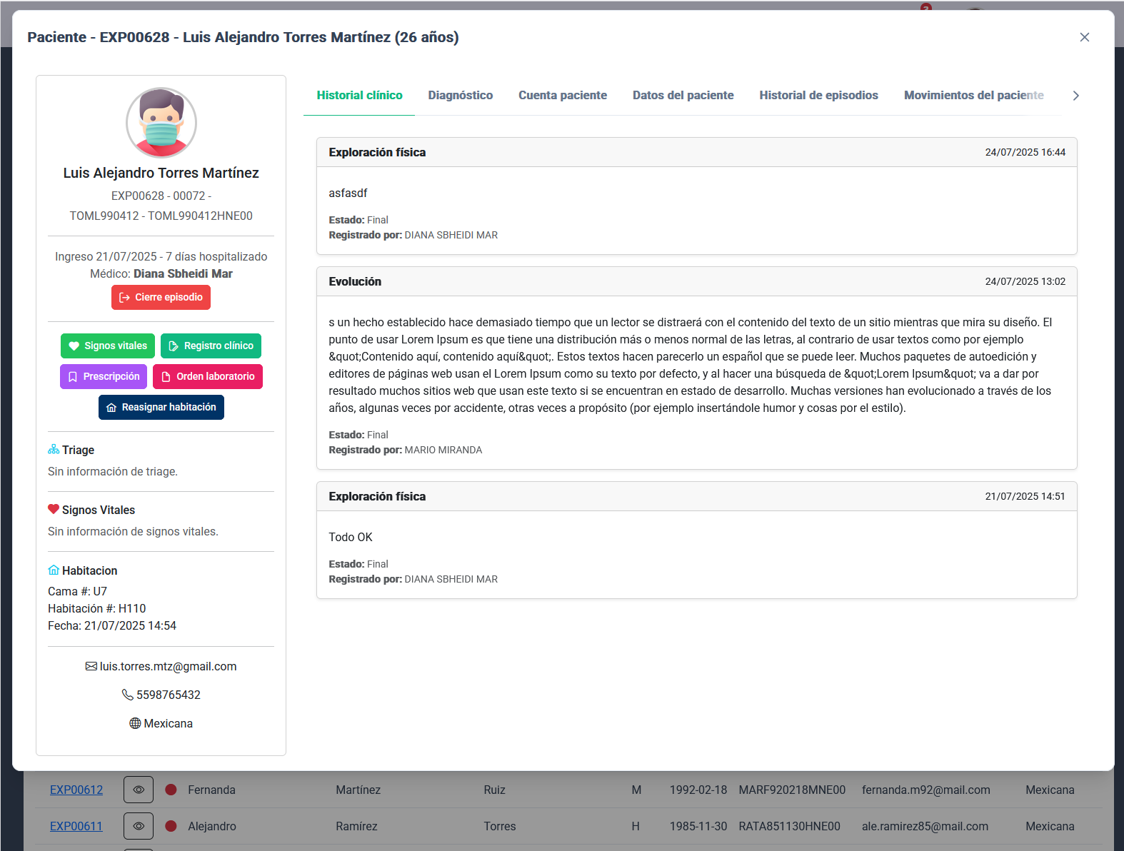 Módulo enfocado en el expediente del paciente.