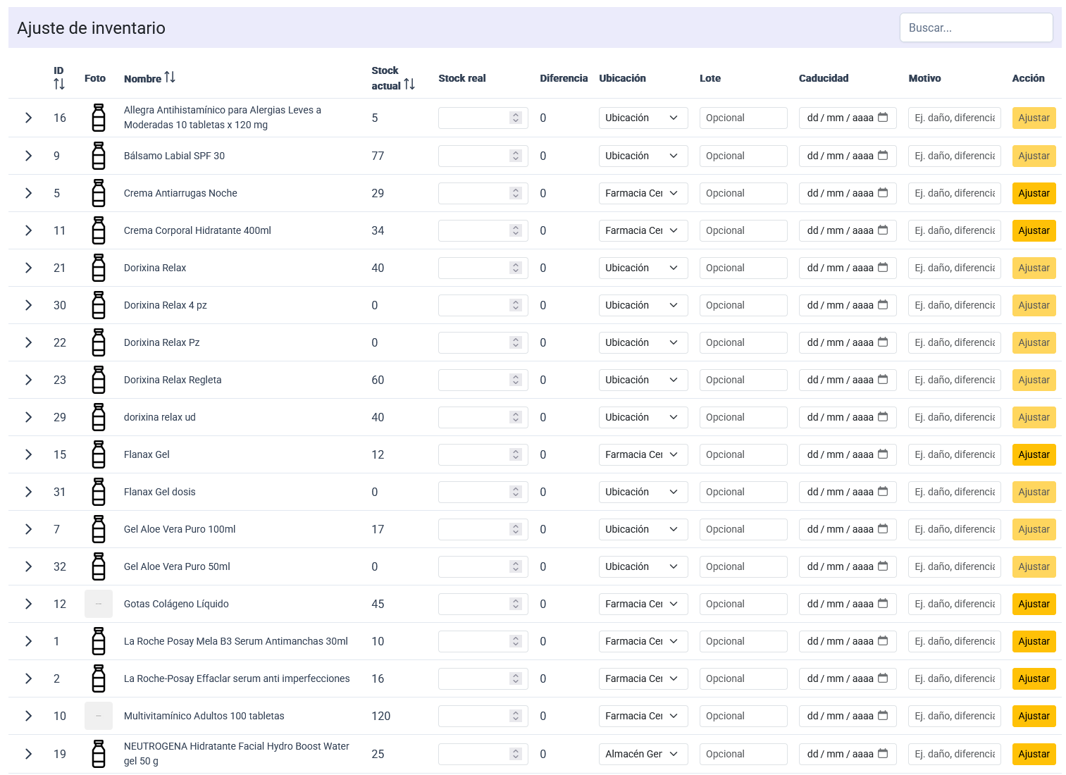 Ajustes de inventario